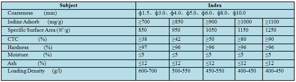 This product uses high-quality anthracite as raw materials and it has different shapes such as columnar, particles, powder and spherical. It has high hardness, excellent adsorption speed and adsorption capacity, larger specific surface area, developed pore structure, and its pore size is between the pore size of coconut shell activated carbon and that of wood-based activated carbon.