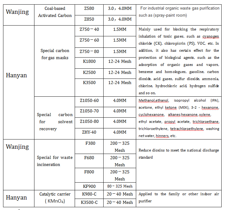 Hanyan activated carbon for waste gas treatment can effectively adsorb waste incineration of cancer-causing dioxins, harmful gas TVOC produced in spray-paint room and toxic organic solvent, etc.